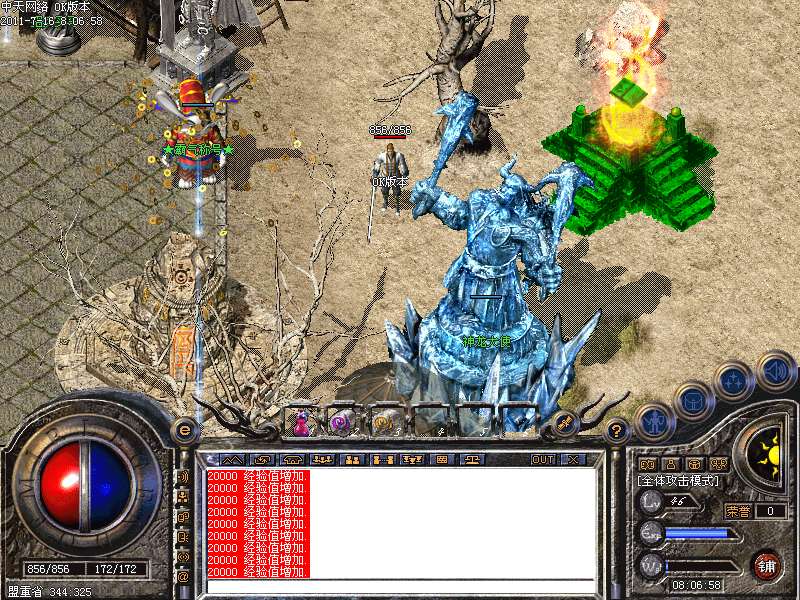 本服务器新区首次拿沙奖励城主8888888元宝!老区拿沙5000000元宝,沙奖励请在22点01分-22点20分之内进入沙奖励室获取奖励证明兑换攻沙元宝奖励。