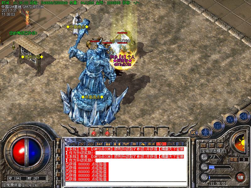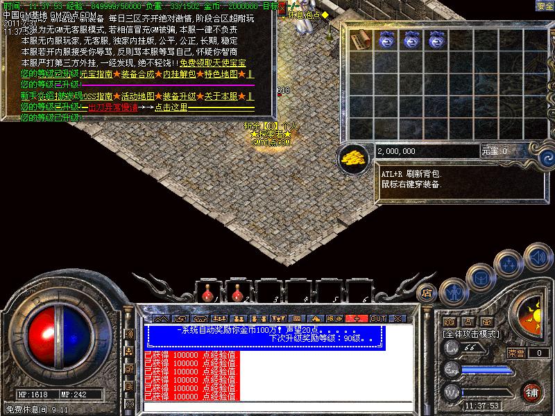 2011.7.20日本服版本成功更新完毕,为回馈玩家对本服的支持,即日起点卡冲值送30%,网银送50%!无GM模式!自行平台冲值!元宝比例1=2000!