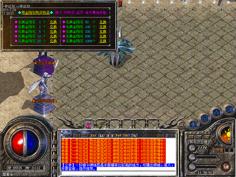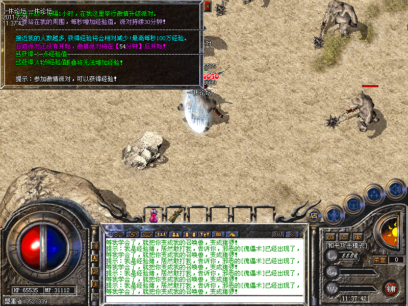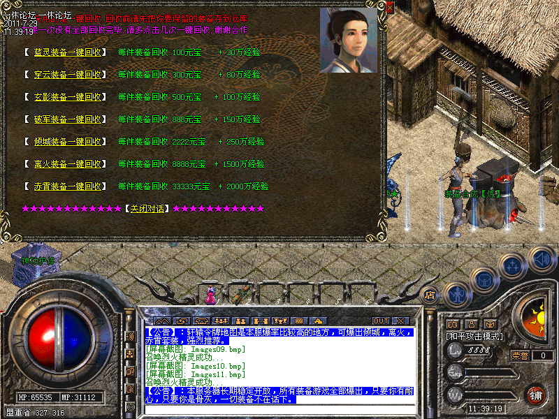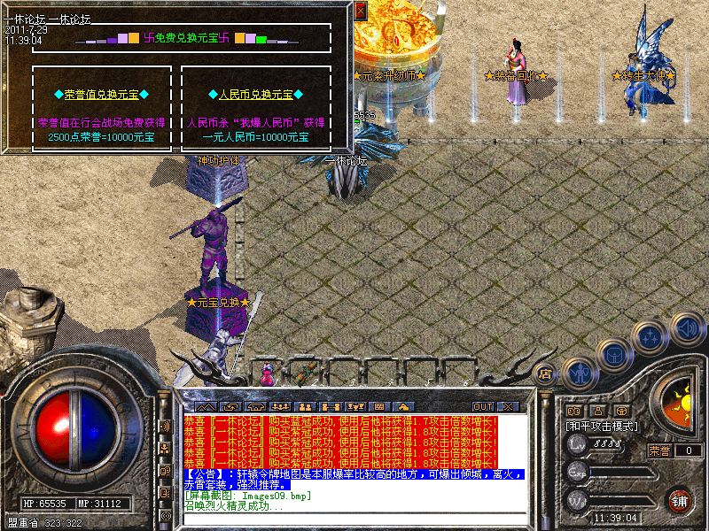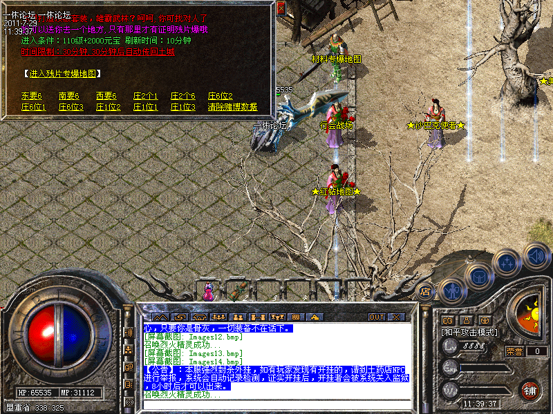最新特色:行会掌门可使用命令:@行会令 召集本行会所有成员到自己身边一起战斗,召唤一次需要500元宝。