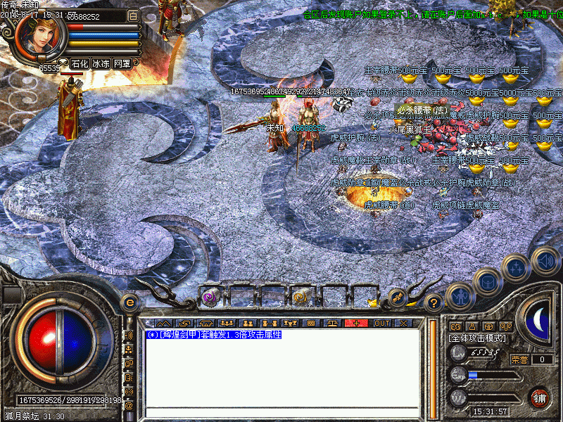 (*)每晚攻沙后,22:30--23:30,在[土武器店门口]附近每隔5分钟发放10000元宝、一千万经验卷