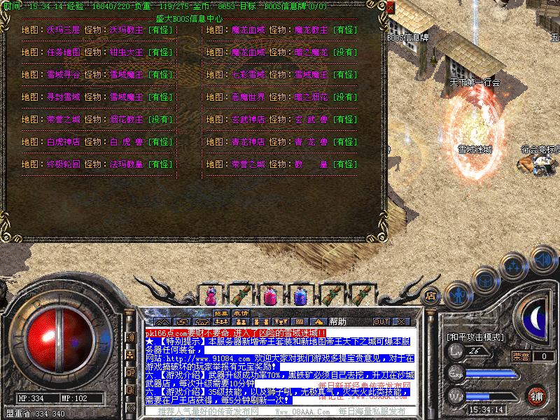 k.超级地图:荣誉之都,所有BOSS20分钟刷新一次,暴率相当的高
