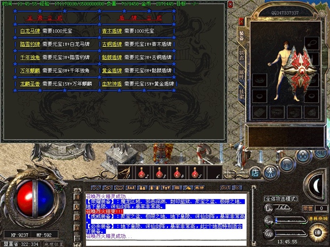 【游戏帮助】:游戏内每次合区将删除60级以下小号,请大家将做仓库用的小号升到60级以上!避免损失!道士40级后召唤神兽可召唤出白虎,70级以后可召出千年虎王!