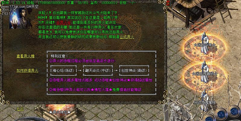 本服加入最新★异火★功能,★异火★越高属性点越多,每升级5种★异火★就可学习★佛怒火莲★技能(超级强悍技能),谁学谁无敌。