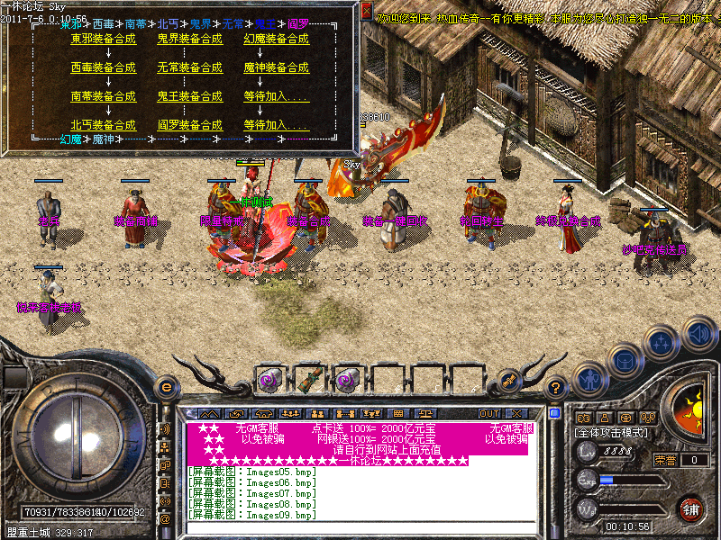 【魔 神】:每天06:00 12:00 18:00 24:00土衣服门口,爆终极装备