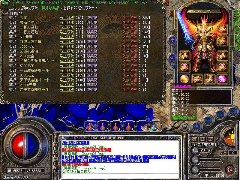 (以攻城当天20-22点服务器最高人数为准),领取地点:沙巴克皇宫之内!