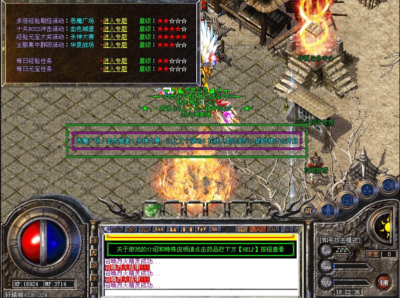 恶魔广场活动,不需要跑动,空手砍怪就可以自动增加经验,操作简单