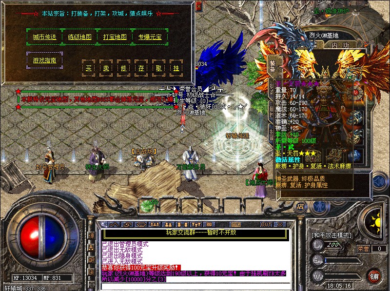 - ☉ 热血传奇单机版V176怀旧复古智能假人攻沙陪玩单机一键安装GM后台免虚拟机