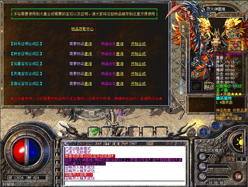 本站高端装备是靠元宝和实力获得,没有一口胖子的道理,一切都是靠时间和经验获得