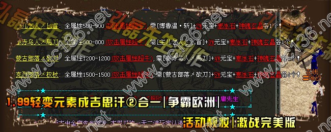 立即下载传奇论坛提供-绝对商业端正在开区_独家制作_07月最新1.99轻变元素作品_成吉思汗②合一_争霸欧洲+补丁