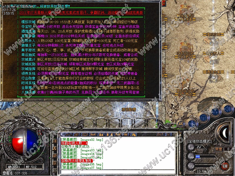 【攻城累计:】新区开放2日后攻城.攻城结束城主可领取全服充值元宝10%的奖励.