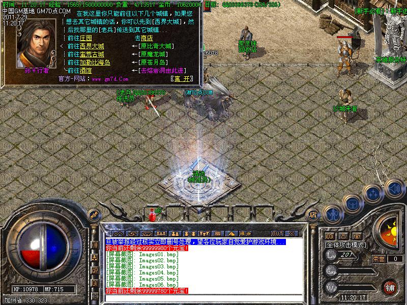 [传送简介]:本服的安全区传送都在老兵处传送,前往处于某地区域内的邪恶区域要到本城镇内找传送员处进行传送,例如:要去[牛魔洞]的玩家必须先到苍月岛,然后找[苍月岛]的老兵进行传送.在别的城镇内是无法找到前往[牛魔洞]的传送...