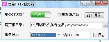 有朋友说不能连接登录器服务器.首先你解压登录器里面的EasyWEP文件夹到你传奇世界的目录.比如我的是:E:网络游戏传奇世界EasyWebWWW.打开EasyWEP网页根目录就设置E:网络游戏传奇世界EasyWebWWW 看下面图片.照那样设置.不可能不能玩的.IP就127.0.0.1 服务器状态要点成已开.步骤:启动D盘里面的传奇世界服务端.完毕后启动EASYWEP.设置好了.打开里面的登录器.闪一下登录器就出来了.点上面已有的传奇家园注册帐号.进游戏了!OK