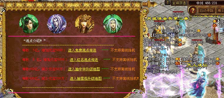 元宝比例1:1亿,元宝只能点上仙到50重,剩余重数必须打卷,各大BOSS都有爆!