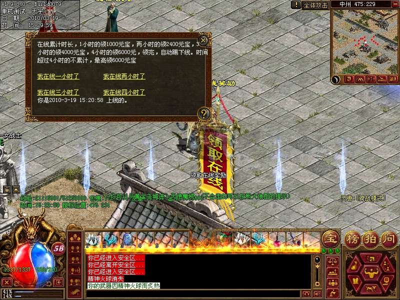3.玩家在线时间达到1.2.3.4小时均可领取元宝和圣王套奖励