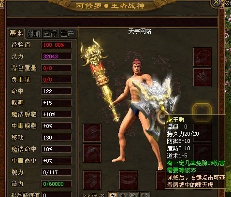 3.增加元神配带元灵盾牌,超级技能项链和猛虎神佑