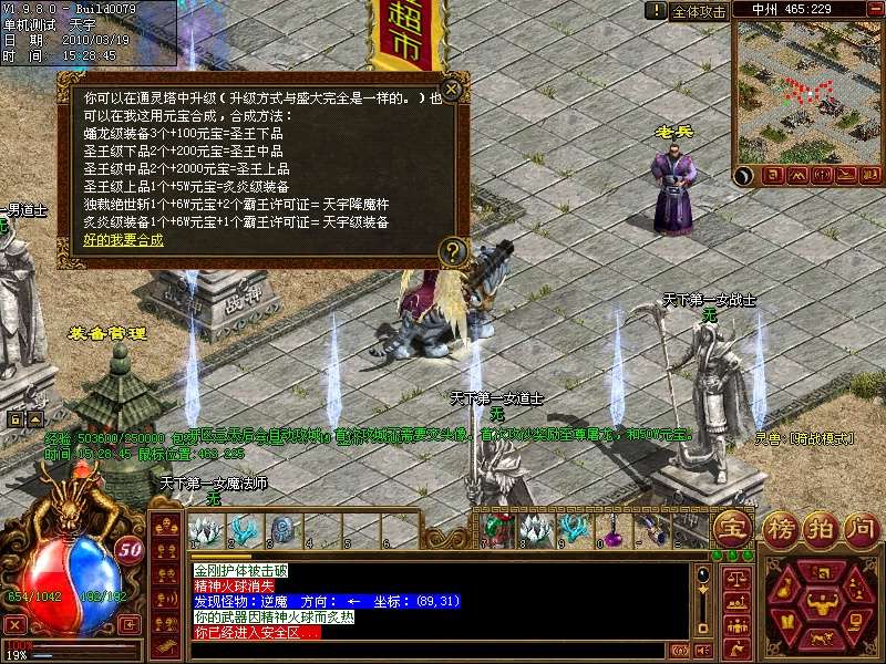 12.中州装备管理处:装备回收元宝和经验;蟠龙级,圣王级,炙炎级套装合成