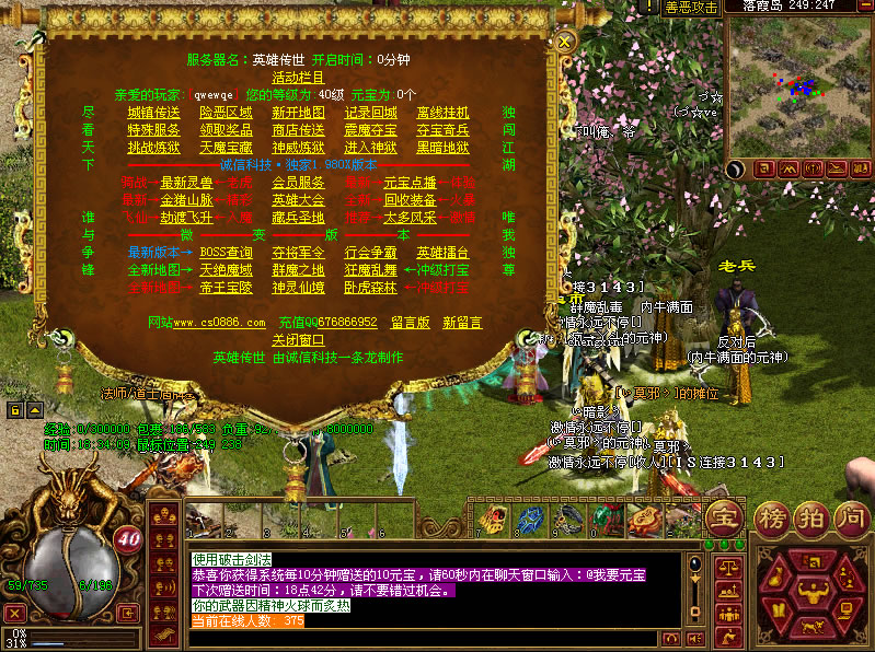 游戏活动介绍:【装备合成功能】【农民闯关】【boss点播】【黑暗地狱】【回收装备】【劫渡飞升】【藏兵圣地】【太多风采】【天绝魔域】【天绝魔域】