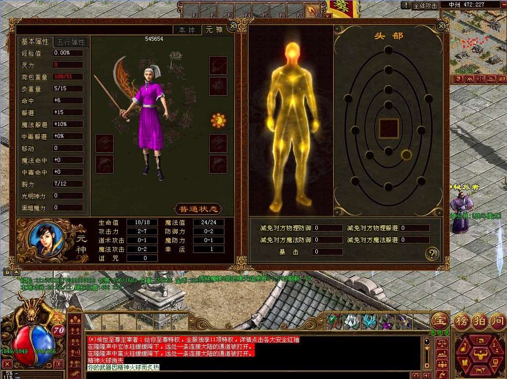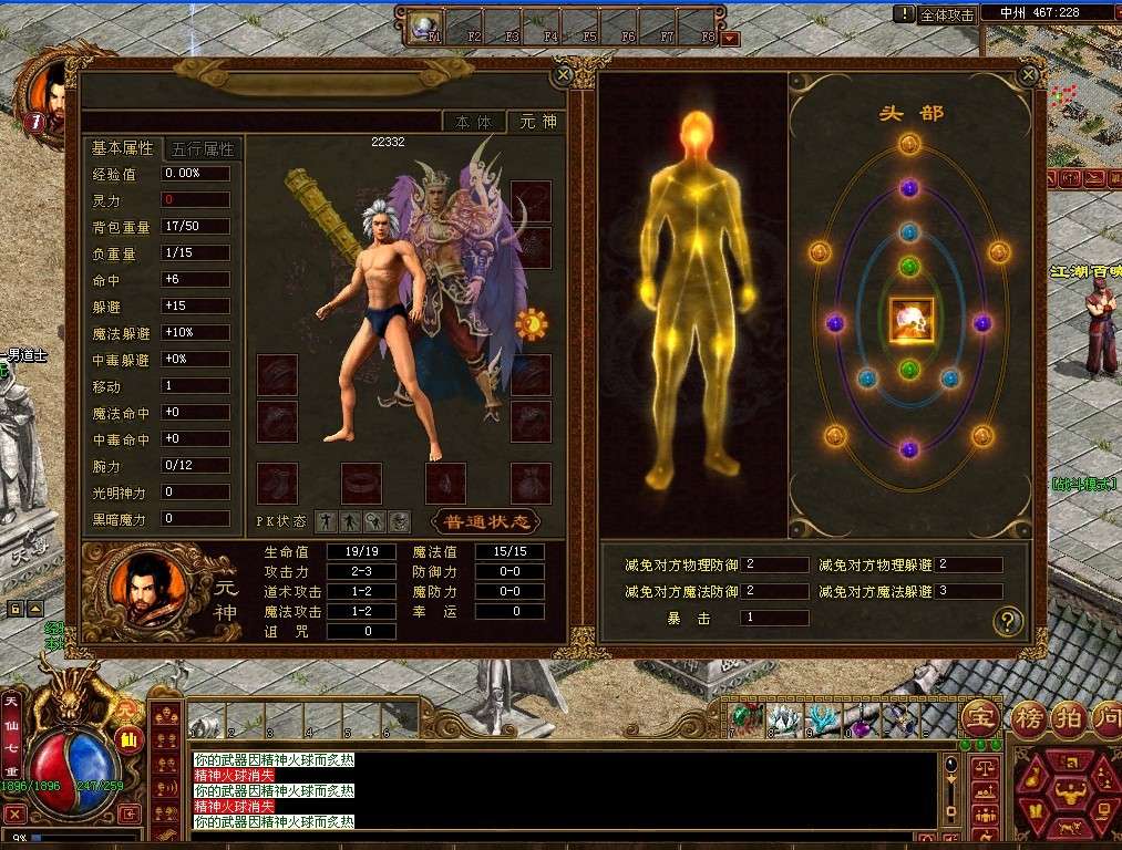 7:支持官方的外现和内敛元神随时切换(需激活心命点)切换时间是60秒冷却时间,元神装备系统自动切换,更加人性化!