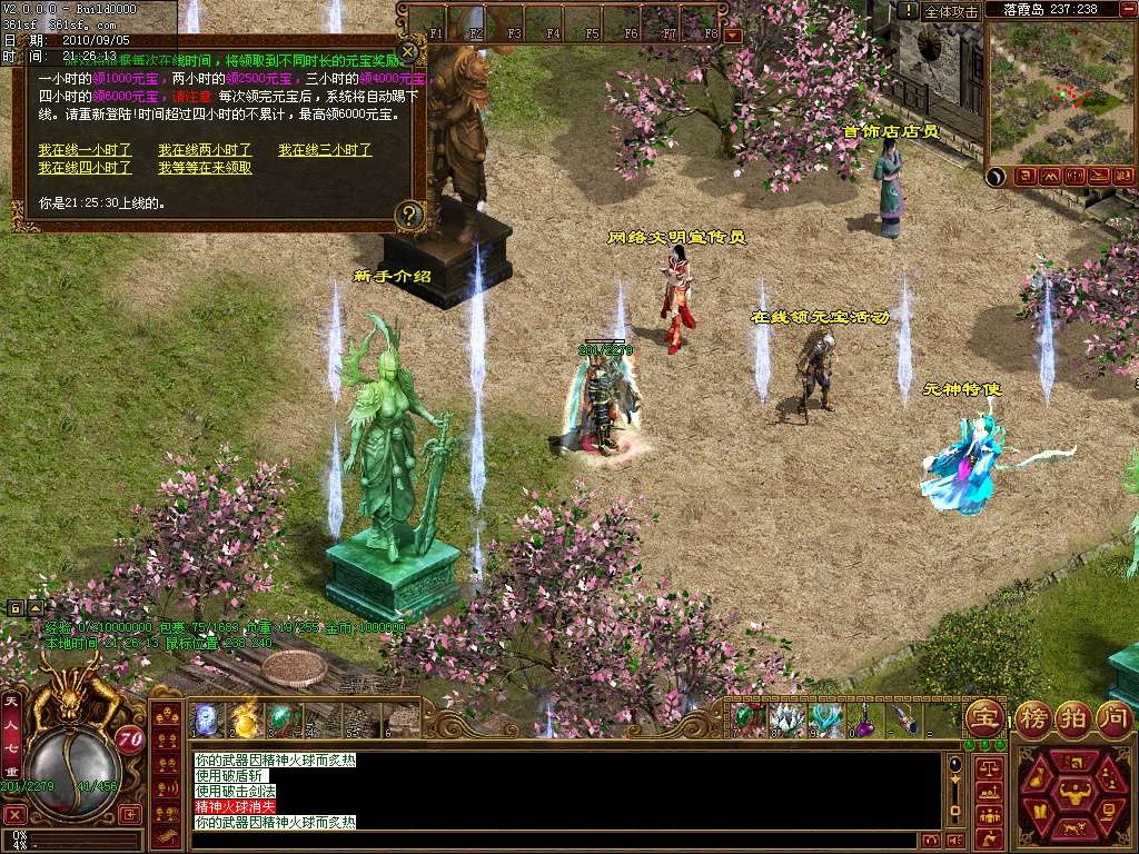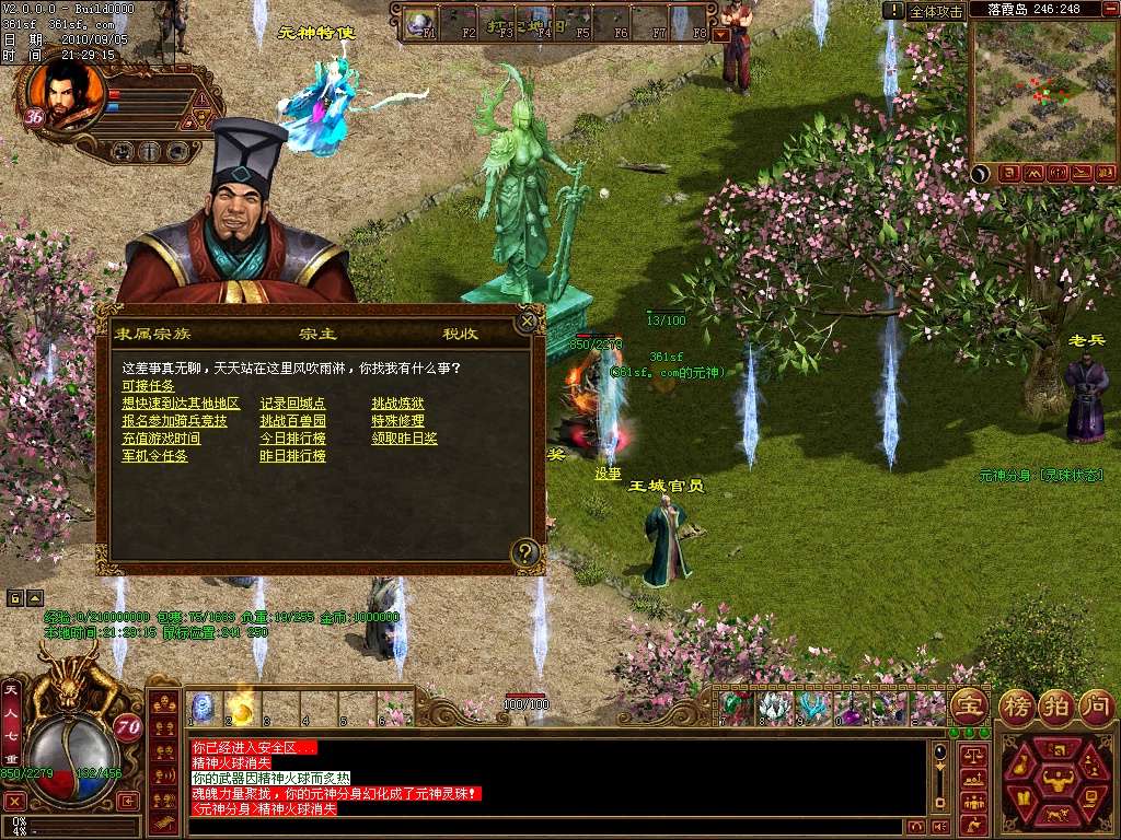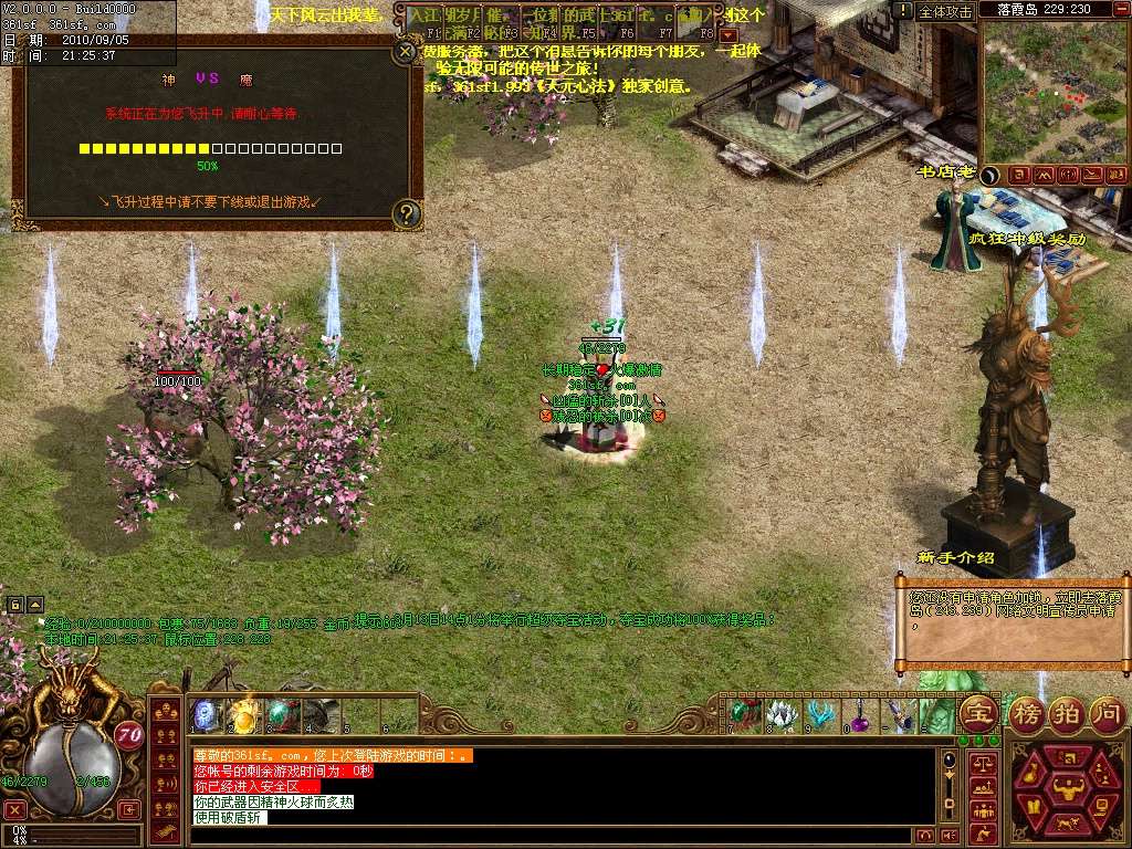 新手介绍:新手初始等级40级,上线即可领取元神,然后点老兵的练级传送进入新手练级区,可以让你迅速升级,你也可以