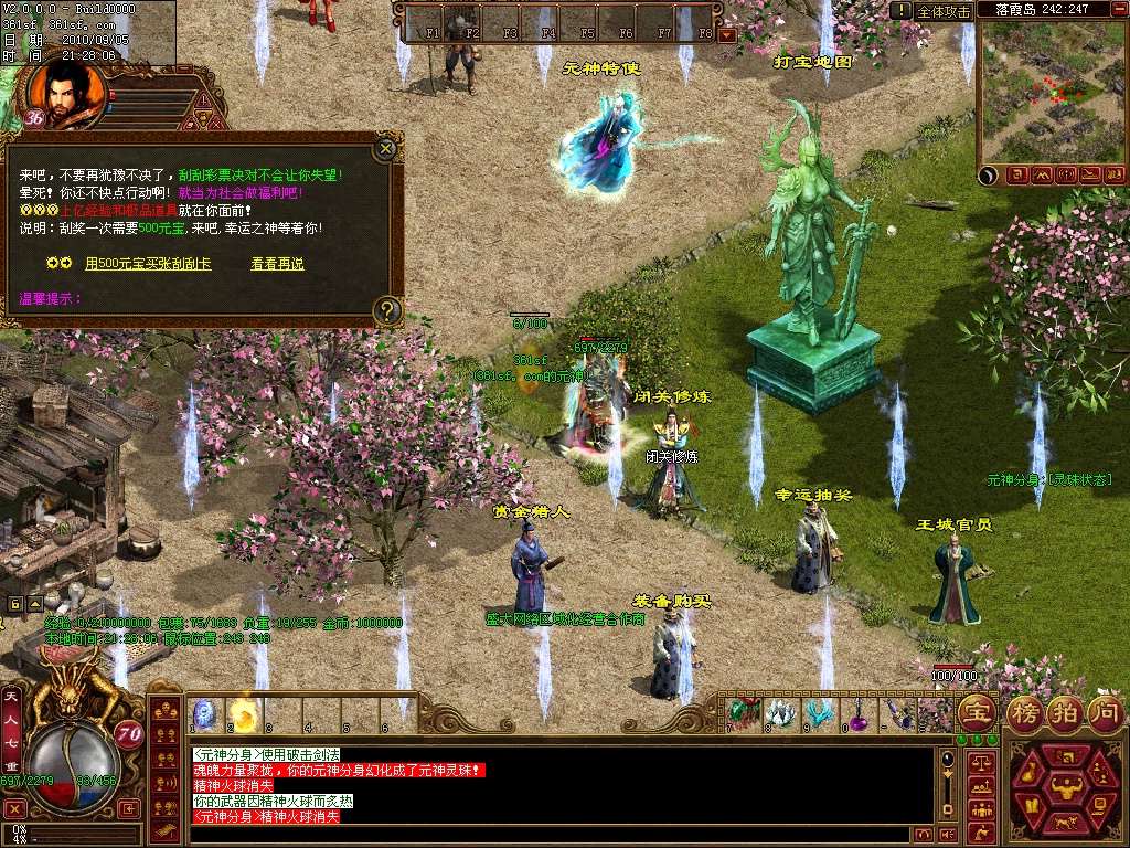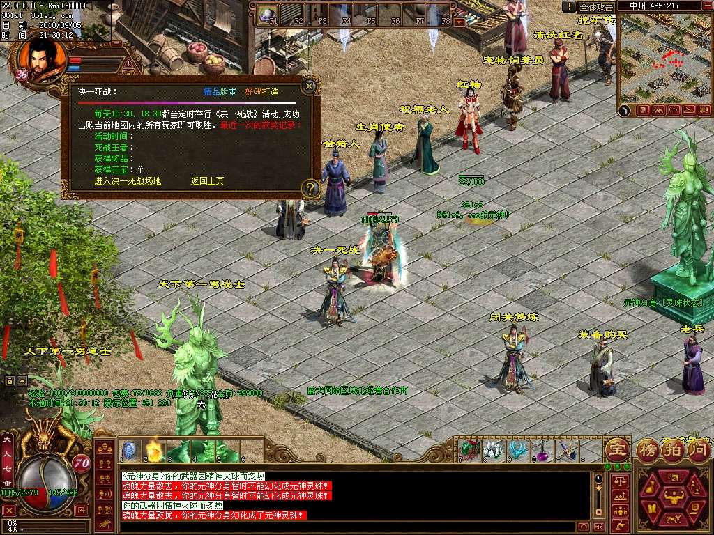 决一死战:混战PK,首创地图转换模式,最后的胜者可获得死战王者的称号,以及获得高级装备和大量元宝的奖励
