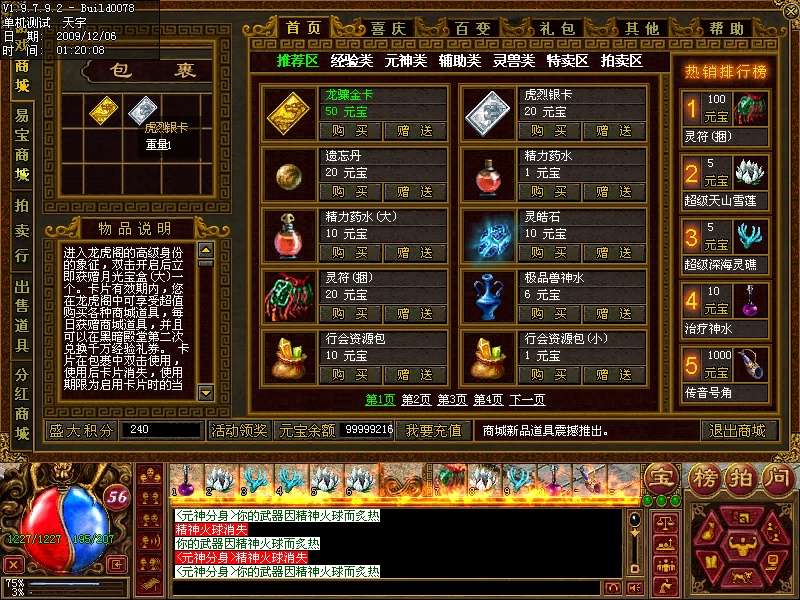 3.商城增加特殊物品和新装备元宝在线购买