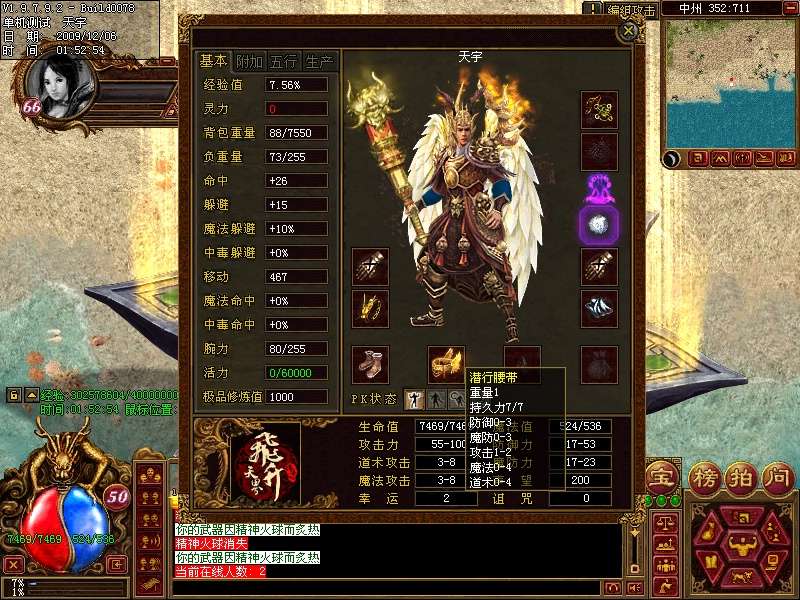 潜行腰带属性:重量:1,持久:7,防御0-3,魔防0-3,攻击1-2,魔法0-4,道术0-4,需要声望25点。元神不可佩戴。