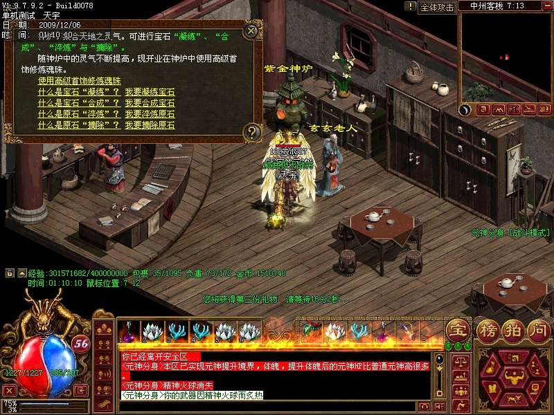 1. 更新五行淬炼功能,可去中州紫金炉对宝石的“凝炼”“合成”原石的“淬炼”“摘除”