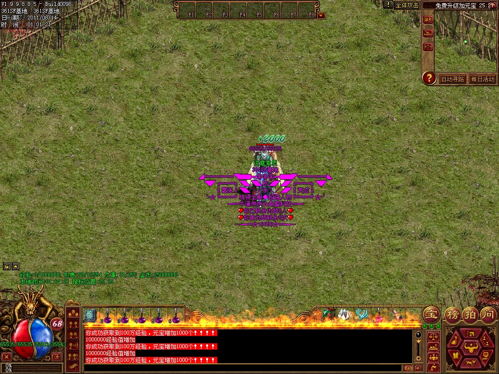 版本名称:361sf基地-2.0传世主宰秒升65535绝对牛逼超变版
