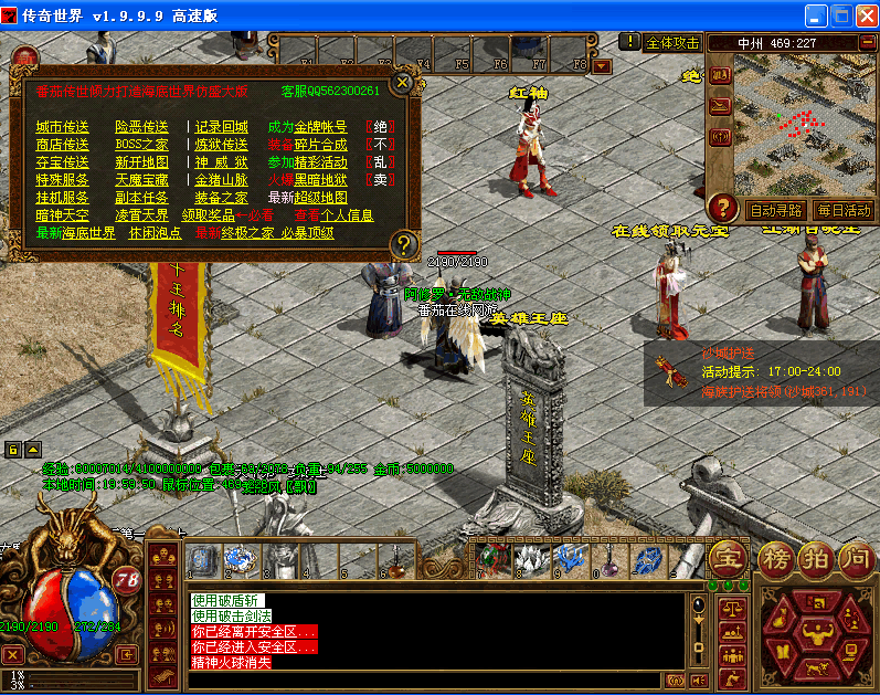 本游戏最新特色:每天4次夺宝决不出一样垃圾,每周三,六随机出元宝(改为最少3000-5000),加海底世界,免费泡点,值班GM,天魔最底层以及黑暗底层等爆点爆率,适合长期玩家玩!(系统每天夺宝时间:9:30,1:30,19:30,23:00)