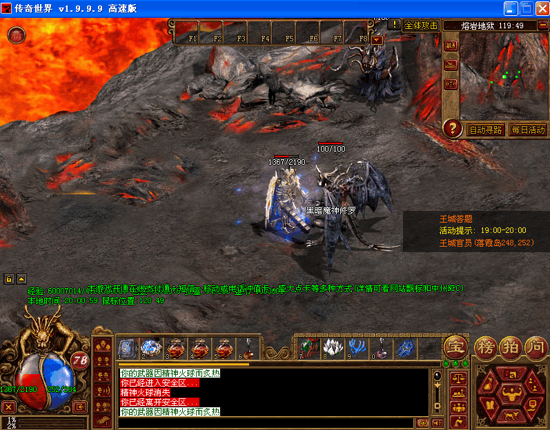 本服版本为1.9996黑暗地狱综合版,支持骑战、元婴、神威狱、天魔宝藏、强化技能、黑暗地狱,海底世界等功能!