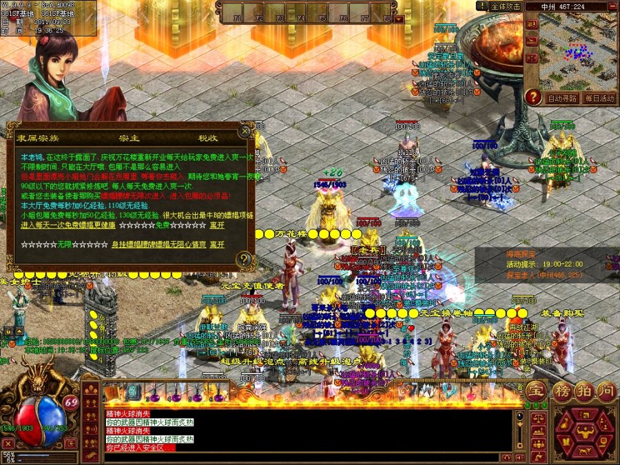 【系统公告】:新增加.10个打宝地图.牛比的怪物.牛比的暴率.万花楼每天免费进入一次.直接爽到心底