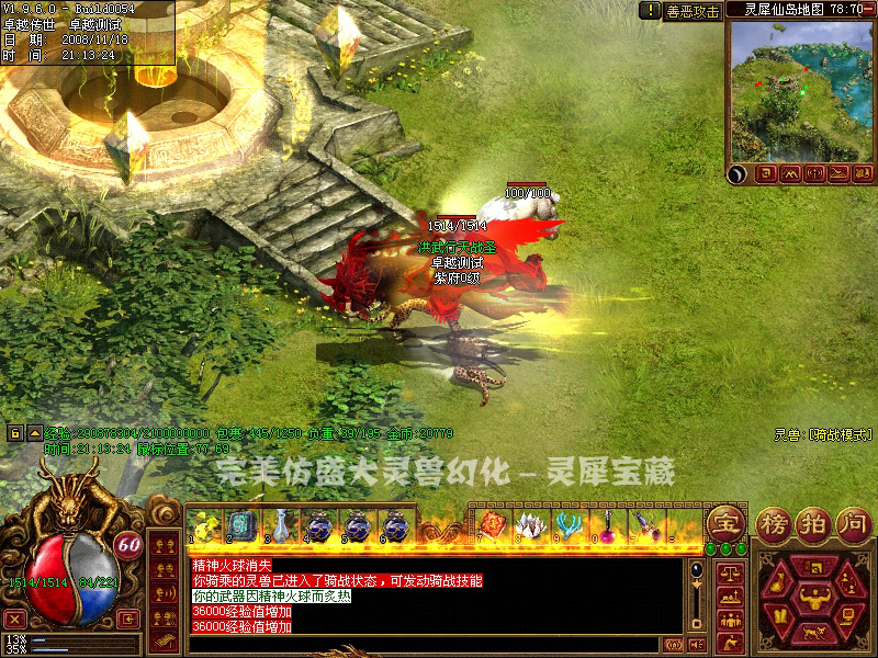 4,新灵兽真骑战系统,二转系统,2转后的灵兽才可以骑战,跟以前骑丛林豹一样.骑上后,按一下CTRL+R就可以使用技能