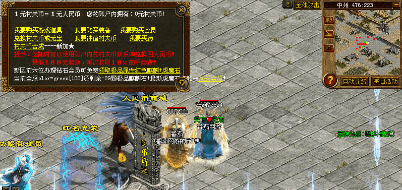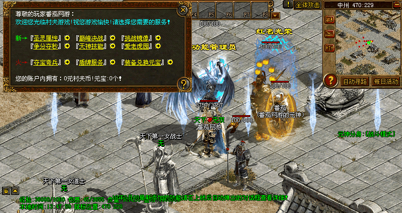 新加中州和死水安全区周围每10分钟刷2只爆不爆看长像.1只狂爆经验卷!疯狂送元宝.装备和经验等级!