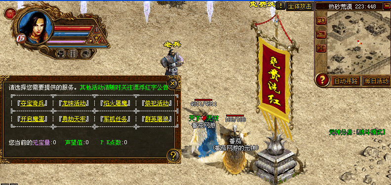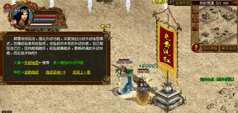 新加两个沙成员练级地图.以及沙城主刷怪打宝功能.爆所有装备.以及很特殊的装备!诱惑.冲动.挡不住哦!