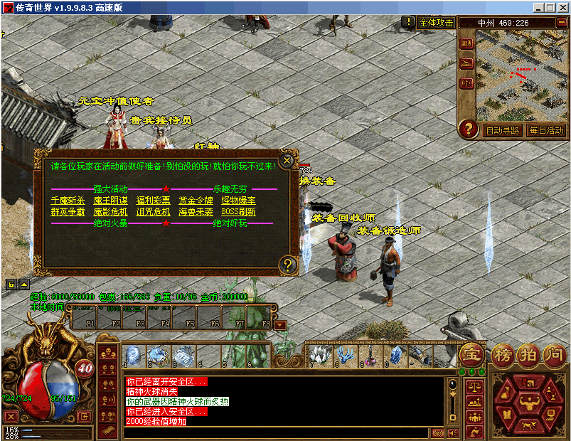 【游戏介绍】本服装备可合成,可回收,爆率合理,三个职业平衡,超级耐玩!相信您会爱上的.