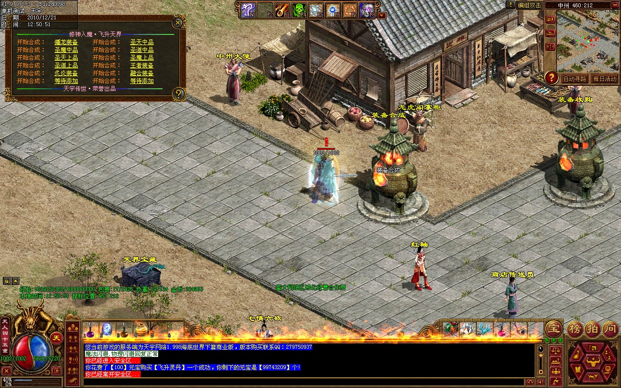 最新装备合成系统,打到的血煞,蟠龙,圣天均可合成更高级的装备,详细查看中州安全区的装备合成