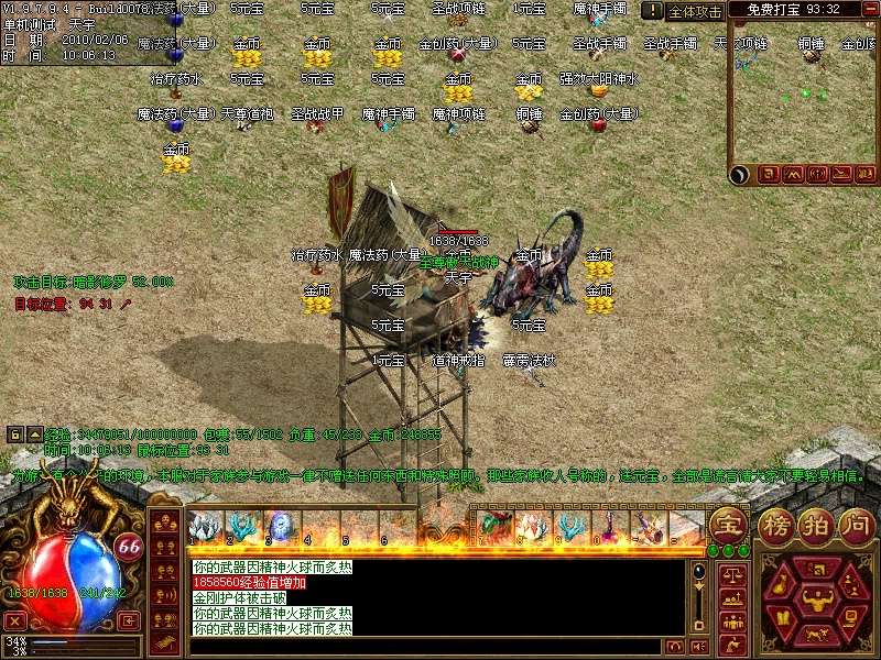 15.开区第二天晚上8点所有行会自动攻沙,沙巴克老大可获得至尊屠龙和50W元宝奖励