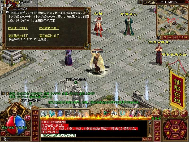 3.玩家在线时间达到1.2.3.4小时均可领取1000-6000不等的元宝