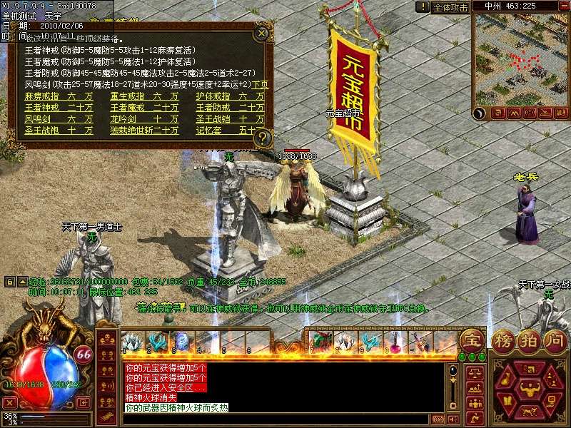 9.中州元宝超市,出售王者神戒,王者魔戒,王者防戒,凤鸣剑等装备和其他物品