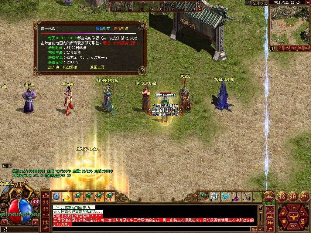 决一死战:混战PK,首创地图转换模式,最后的胜者可获得死战王者的称号,以及获得高级装备和大量元宝的奖励