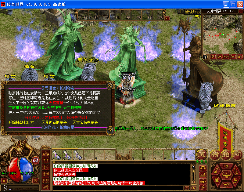 最新独家特色--挑战七仙女!(获取天宫宝盒活动-随机换取顶级装备或特殊戒指)