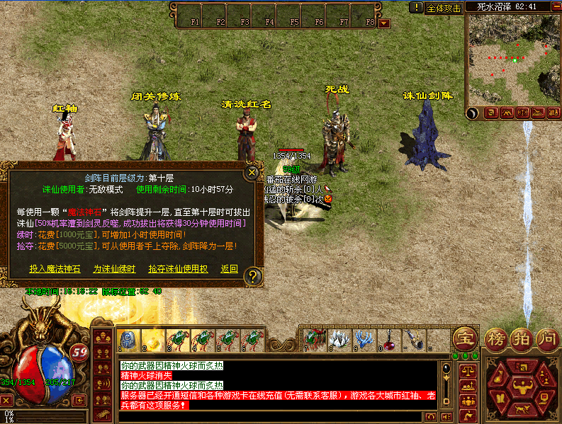 新手介绍:新手初始等级40级,上线即可领取元神,然后点老兵的练级传送进入新手练级区,可以让你迅速升级,你也可以