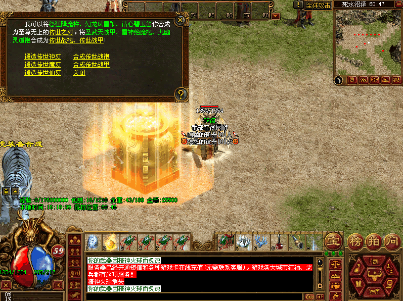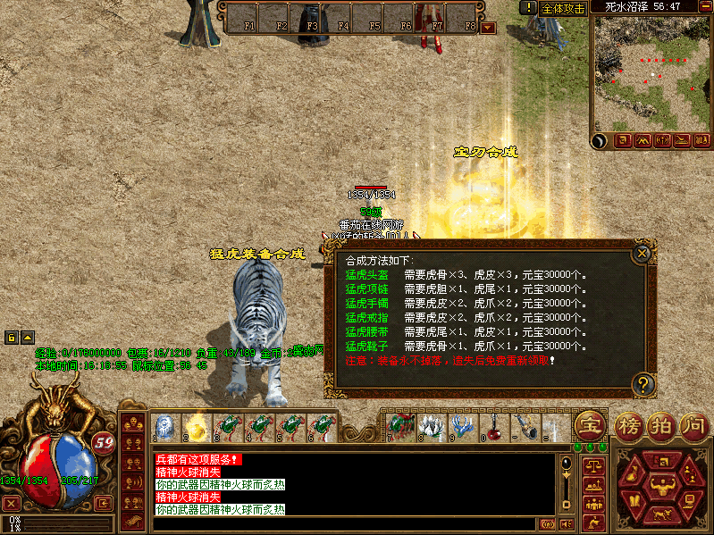 第二:完美实现官方虎王系统,喂食虎王可获得五行攻击、五行防御,不同的职业获得不同的虎王技能