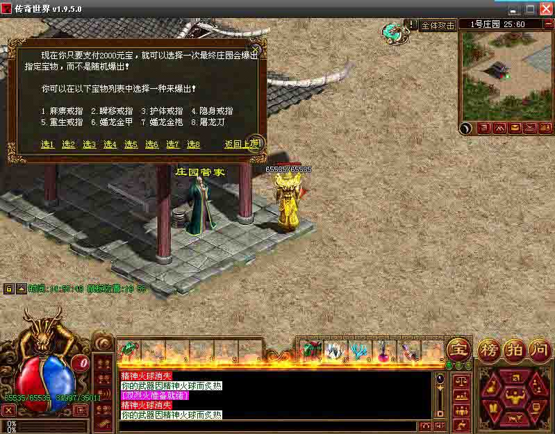 4>.实现了在宝鼎附近可以挖掘出各种宝物,宝物有好有坏,具体哪个坐标上有好的宝物需看自己运气!