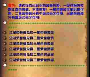 B、魔兽江湖系统:一种全新的PK杀人荣誉系统,杀人得江湖荣誉值,荣誉值可以兑换装备、兑换金币、兑换魔币