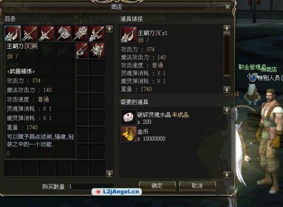 精练武器、生命石出售、购买武器、装备、武器搜魂、装备解封、玩家降级、购买EXP、购买SP等 。