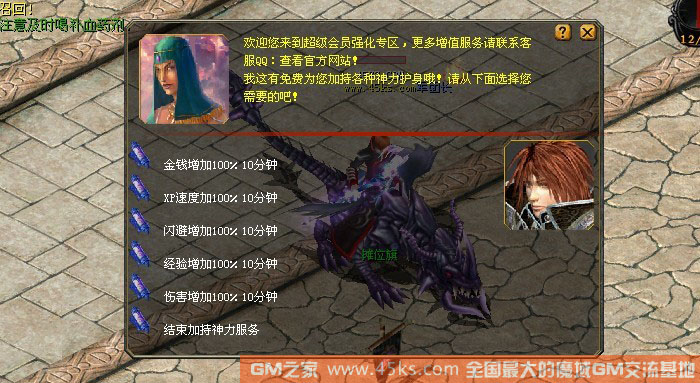 4.随身NPC中增加神力护体功能,金钱、XP、闪避、经验、伤害+100%