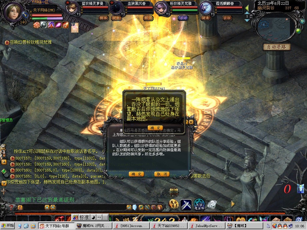 任务介绍四:副本任务,满百级玩家可进入副本“幽灵裂谷”。所有小怪爆2700魔石卡,19,25星XO,升