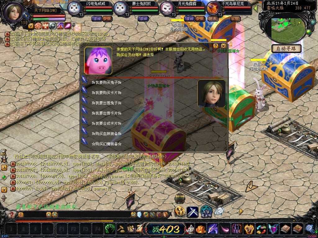 ㈤:宝宝:4只兔子,每只进化20星,属性比年兽好一点,在物品.专卖处购买,五爪神龙-九天玄凤进化100星[非卖品]挑战获得,