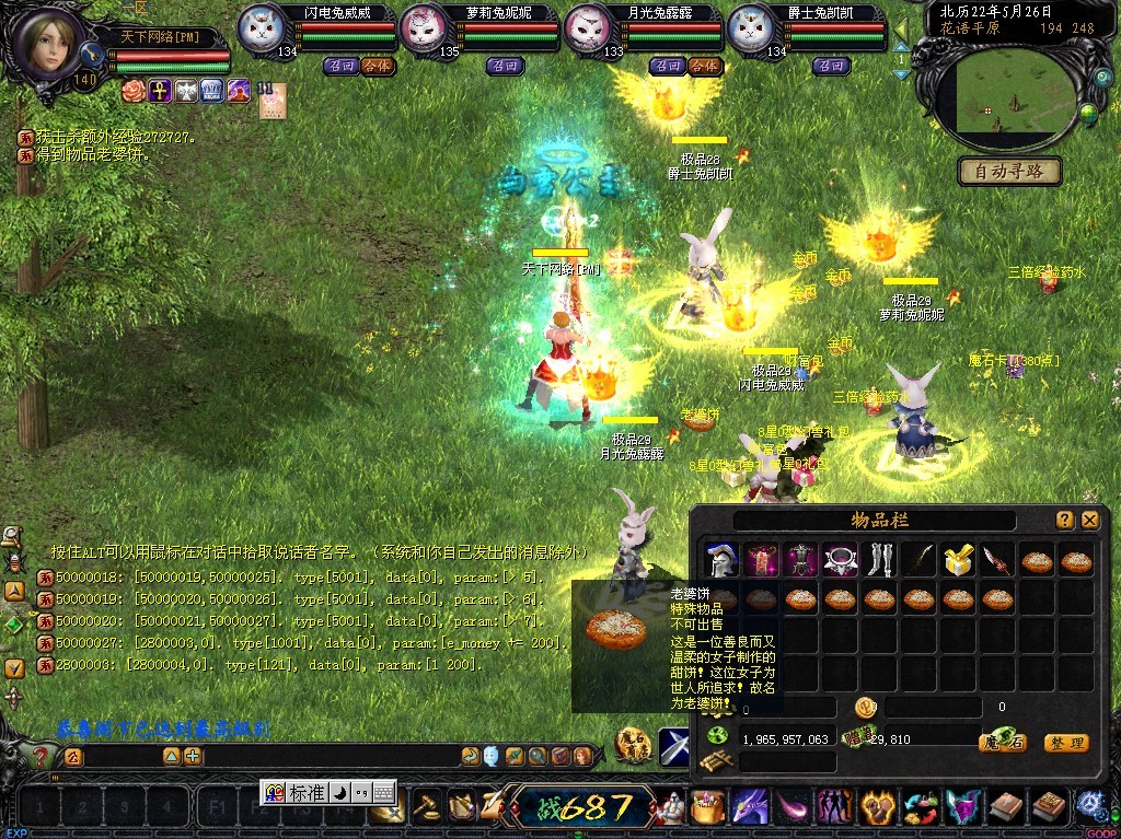 老婆饼任务:全怪掉老婆饼,BOSS大爆!上交给“悲情法师”有一定机率获得终极装备,神谕之石,大量魔石等物品,提交老婆饼系统会刷出远古大魔王,打败后也会爆出圣兽之心5星药水。1星药水,+255装备极品等。